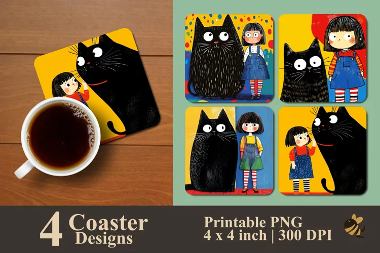 Coaster Sublimation Design Coaster Template Coaster Design Square Coaster Coaster Sublimation Design Coaster Sublimation Vintage Coaster Modern Coaster Cute Girl And Cat Coaster Sublimation Designs