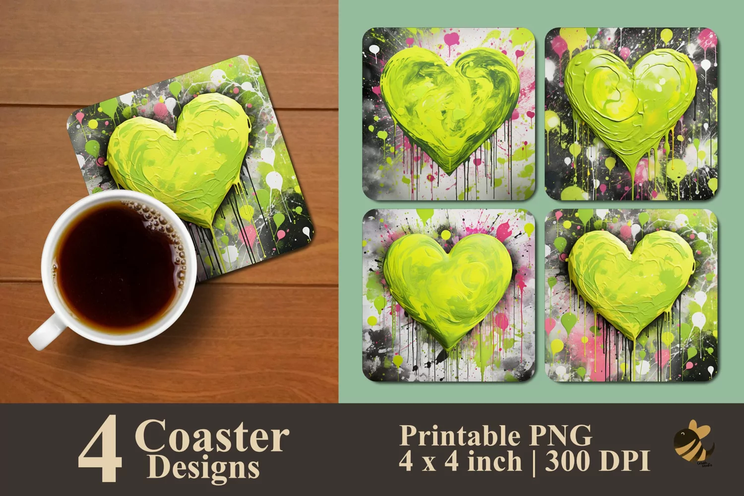 Coaster Sublimation Design Coaster Template Coaster Design Square Coaster Coaster Sublimation Design Coaster Sublimation Vintage Coaster Modern Coaster Green Love Textured Coaster Sublimation Designs