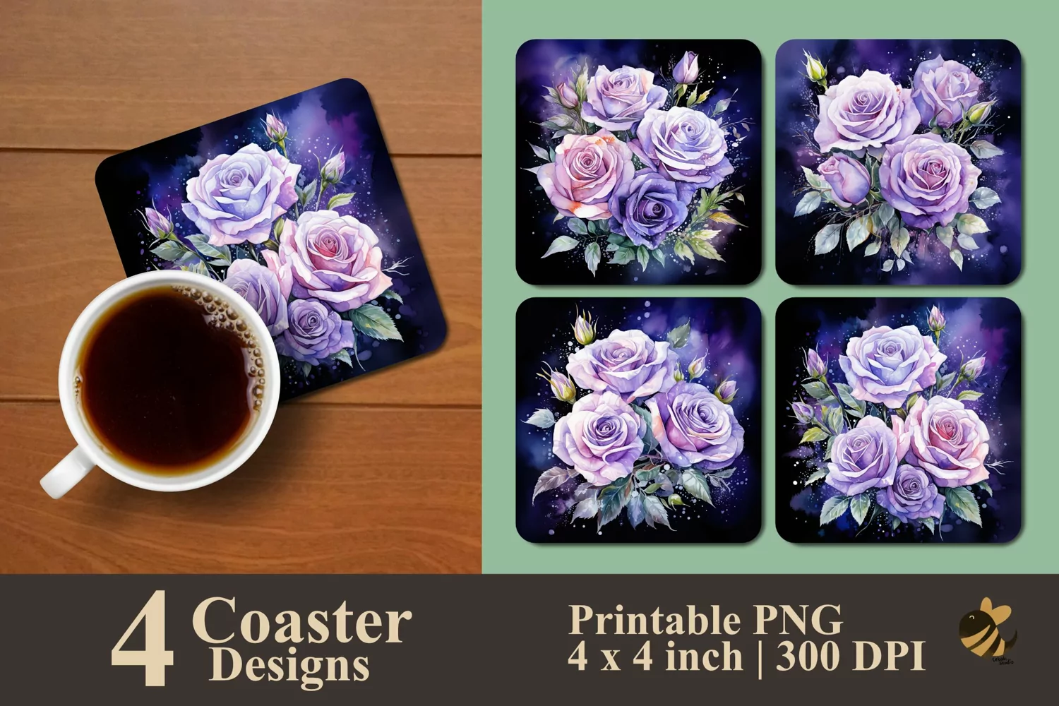 • 4 Coaster design about 4x4 inches around 1200x1200 px PNG files 300 DPI