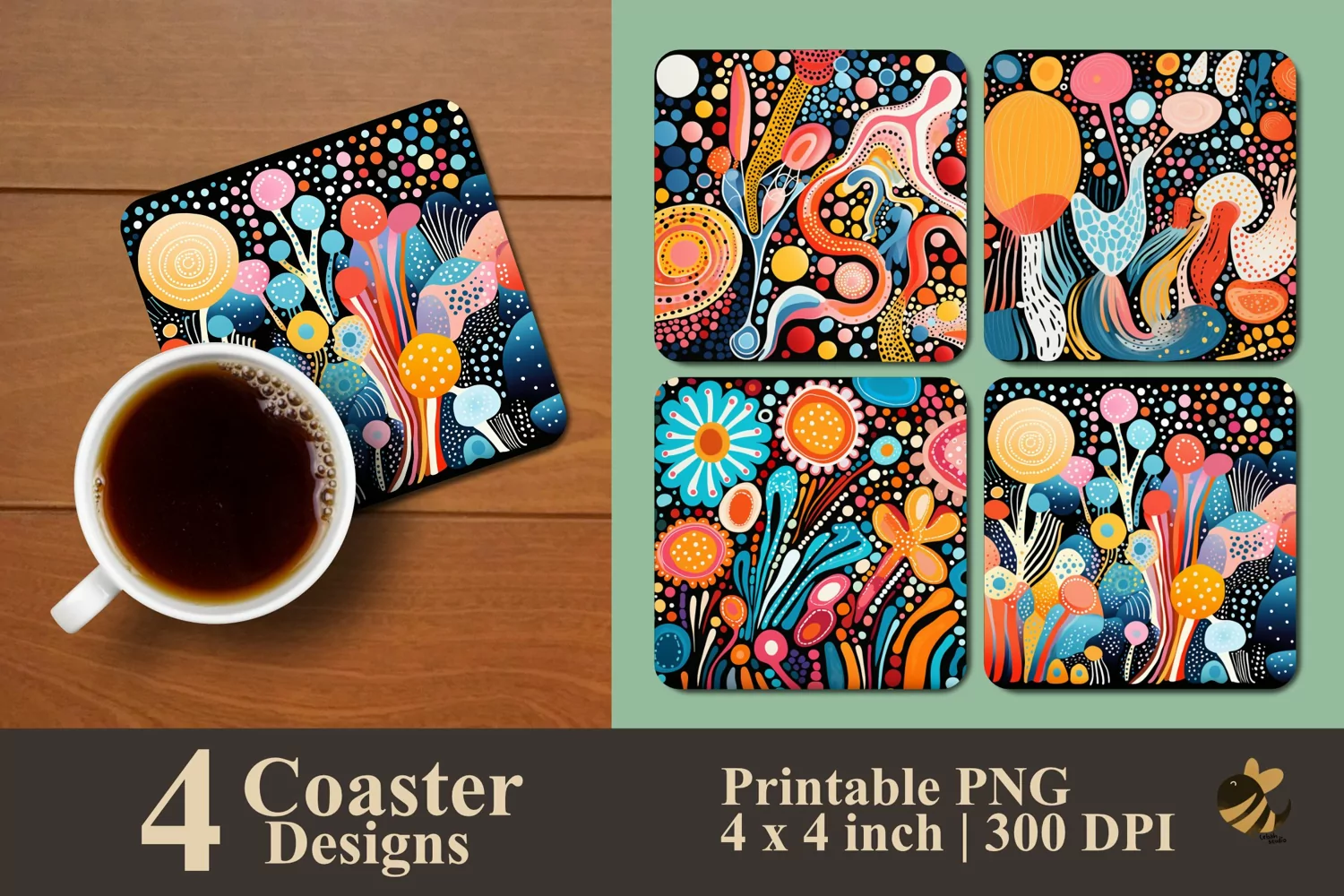 • 4 Coaster design about 4x4 inches around 1200x1200 px PNG files 300 DPI