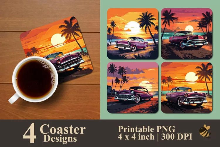 Coaster Sublimation Design Coaster Template Coaster Design Square Coaster Coaster Sublimation Design Coaster Sublimation Vintage Coaster Modern Coaster Car Parking On The Beach Coaster Sublimation
