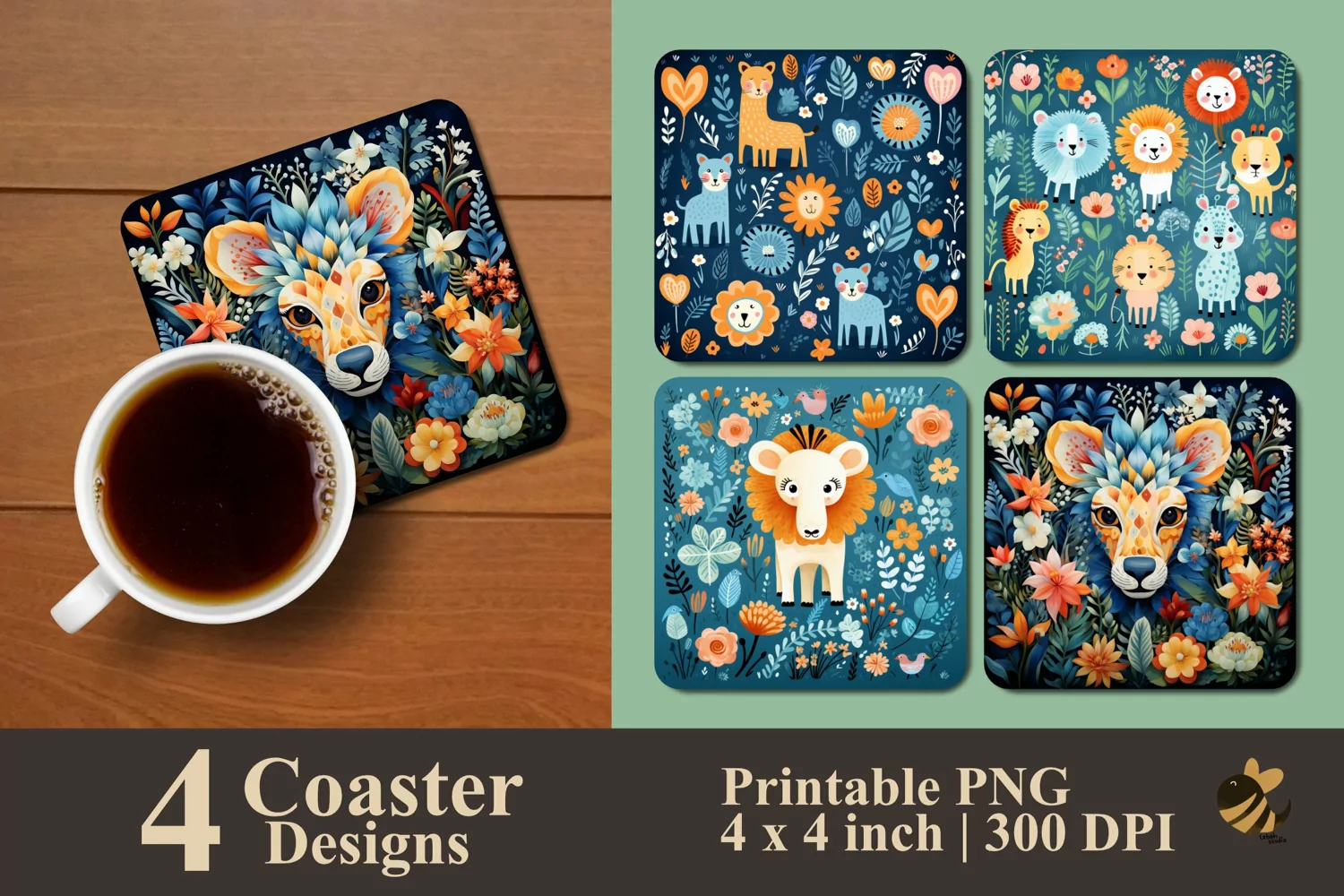 • 4 Coaster design about 4x4 inches around 1200x1200 px PNG files 300 DPI
