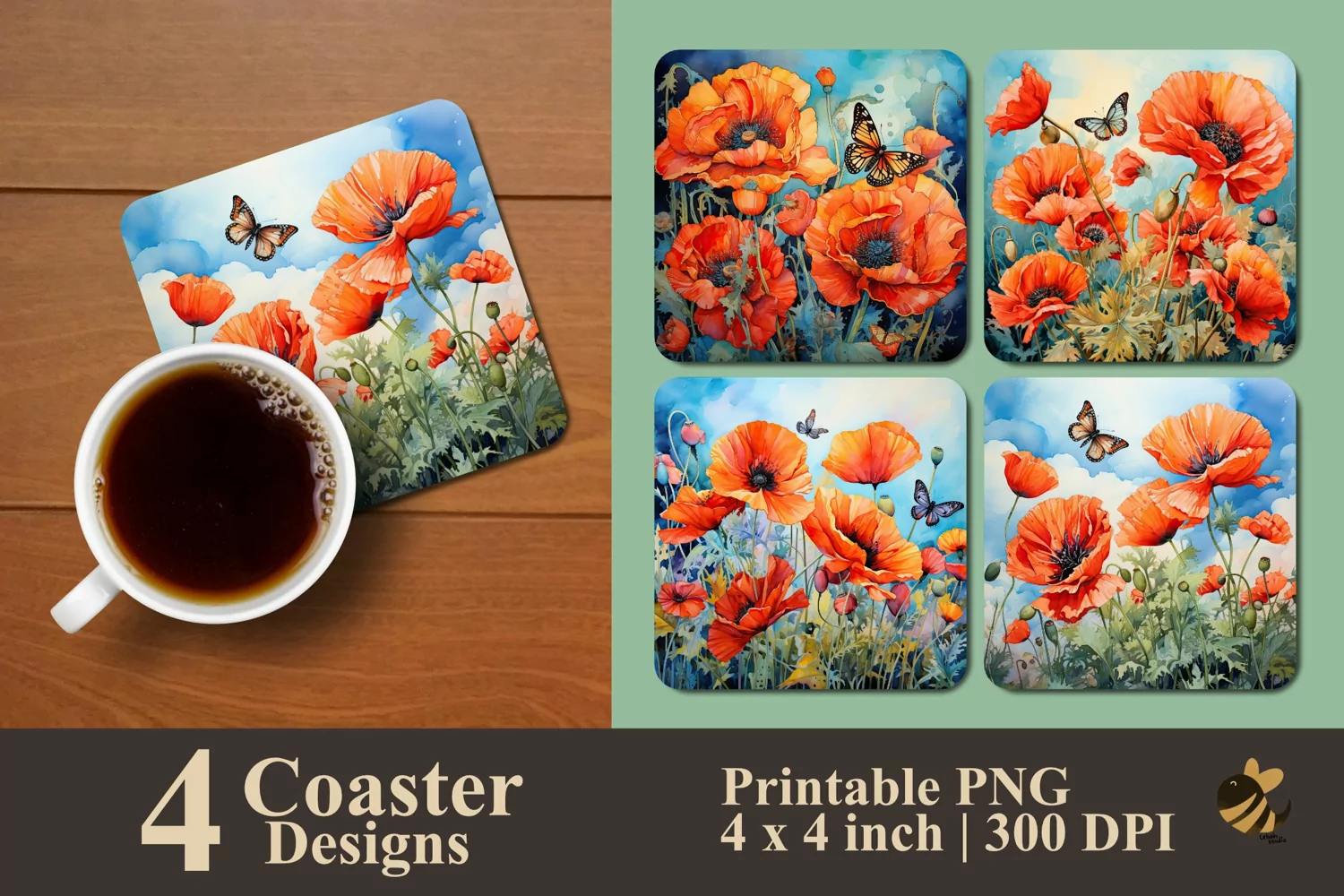 Coaster Sublimation Design Coaster Template Coaster Design Square Coaster Coaster Sublimation Design Coaster Sublimation Vintage Coaster Modern Coaster Poppy Flower And Butterfly Coaster Sublimation