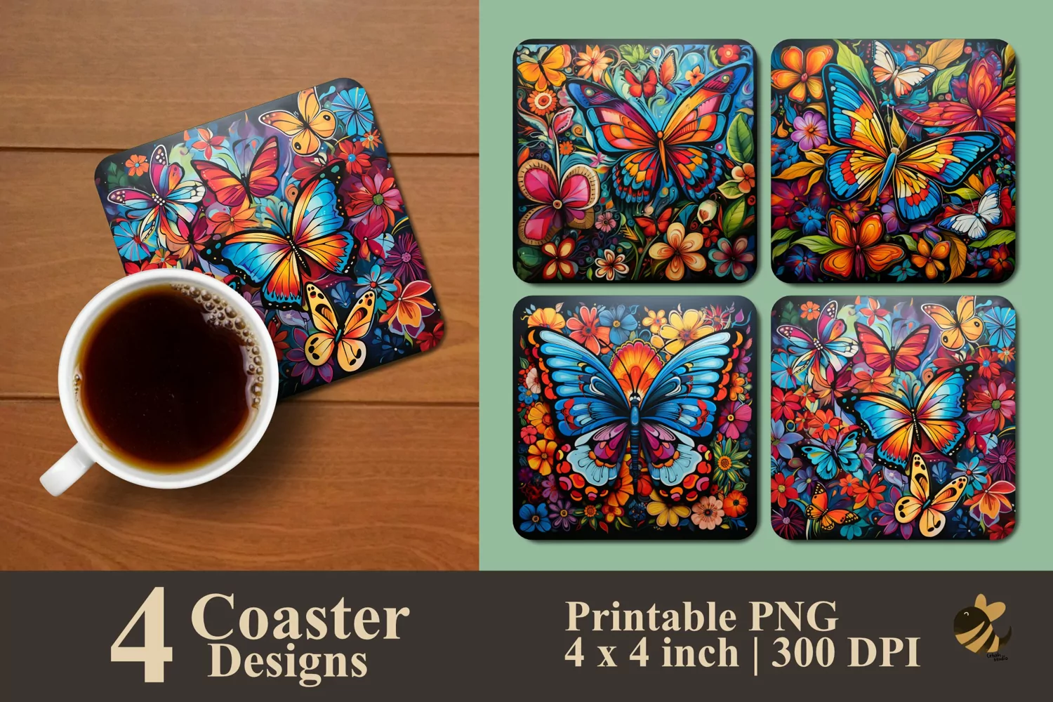 Coaster Sublimation Design Coaster Template Coaster Design Square Coaster Coaster Sublimation Design Coaster Sublimation Vintage Coaster Modern Coaster Colorful Butterfly Coaster Sublimation Designs