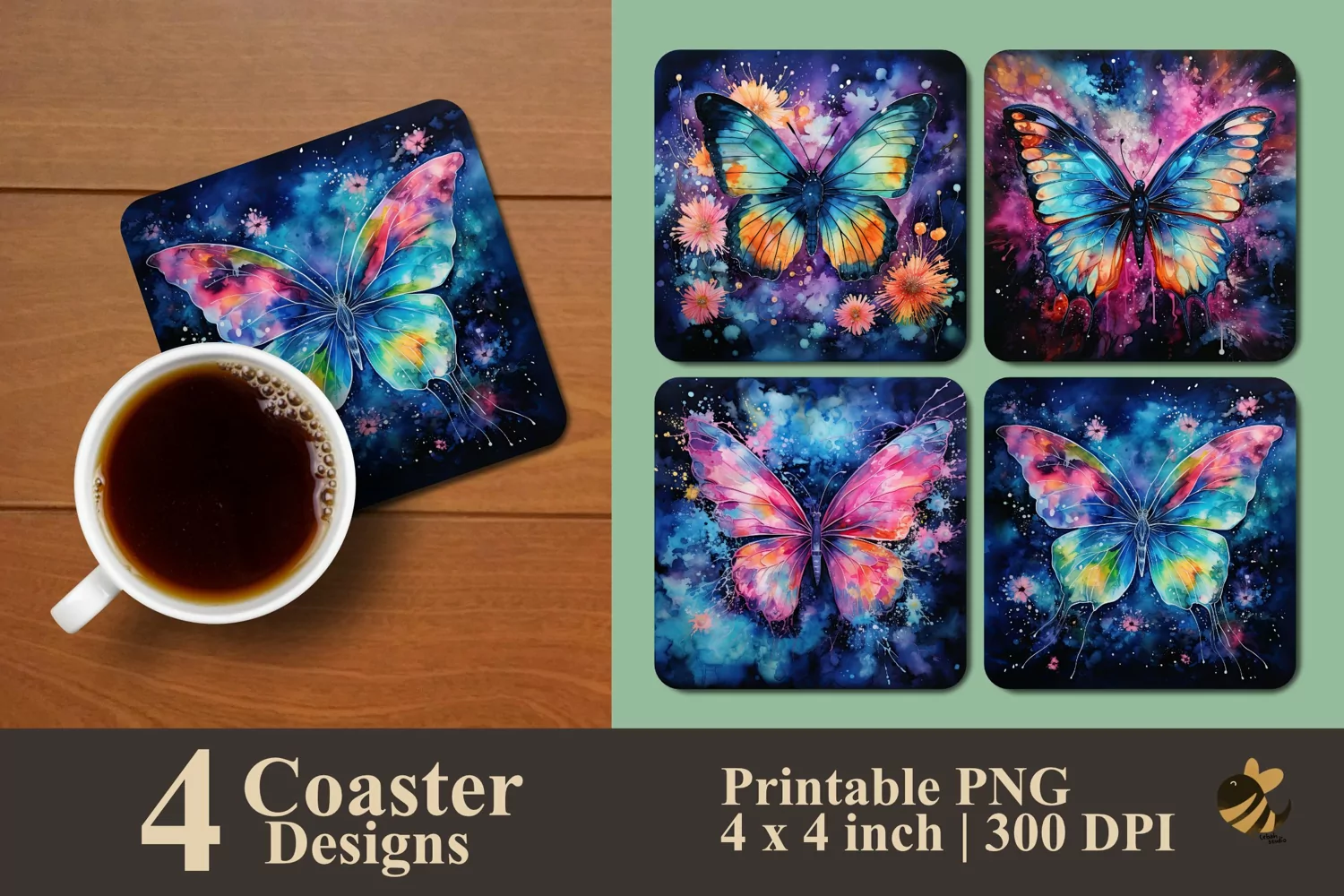 Colorful Butterfly Coaster Sublimation Designs example image 1