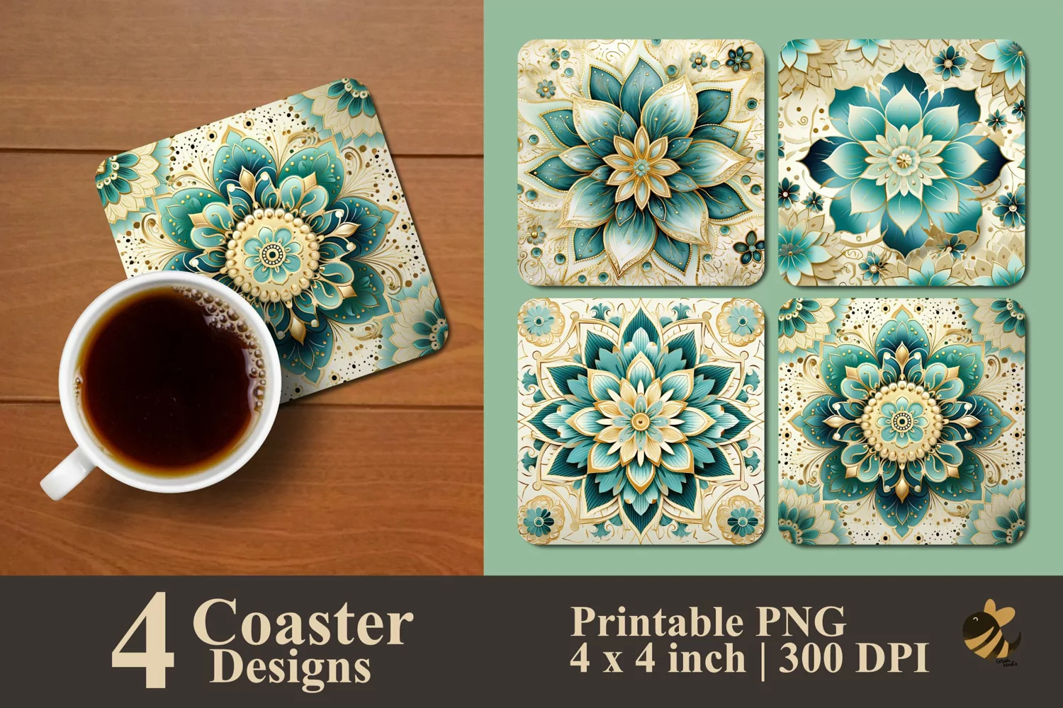 • 4 Coaster design about 4x4 inches around 1200x1200 px PNG files 300 DPI