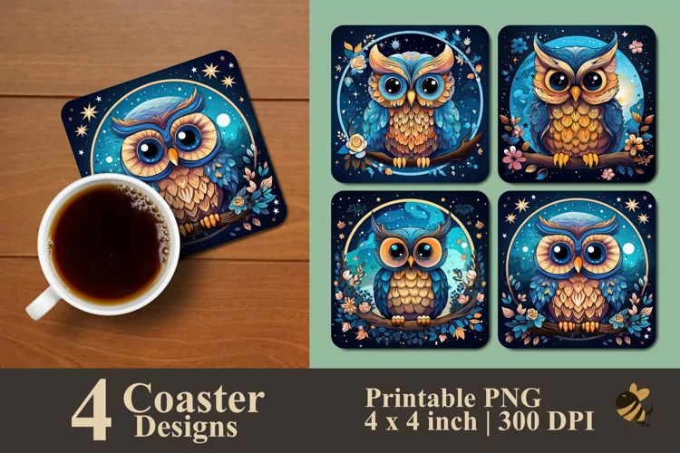 Coaster Sublimation Design Coaster Template Coaster Design Square Coaster Coaster Sublimation Design Coaster Sublimation Vintage Coaster Modern Coaster Cute Blue Owl Coaster Sublimation Designs