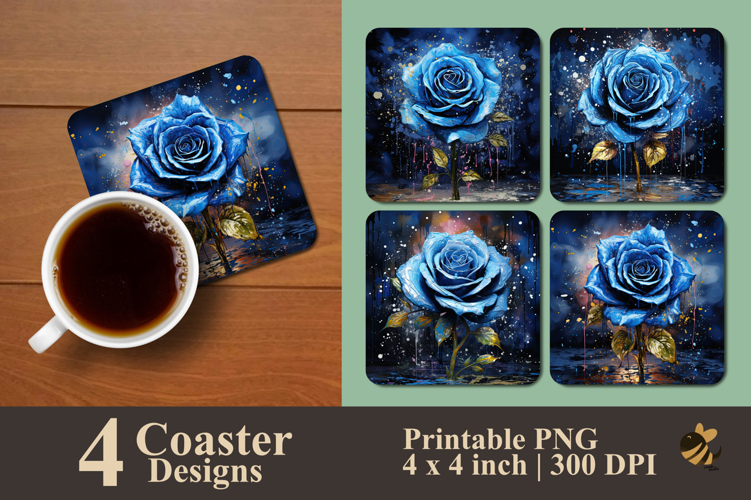 • 4 Coaster design about 4x4 inches around 1200x1200 px PNG files 300 DPI