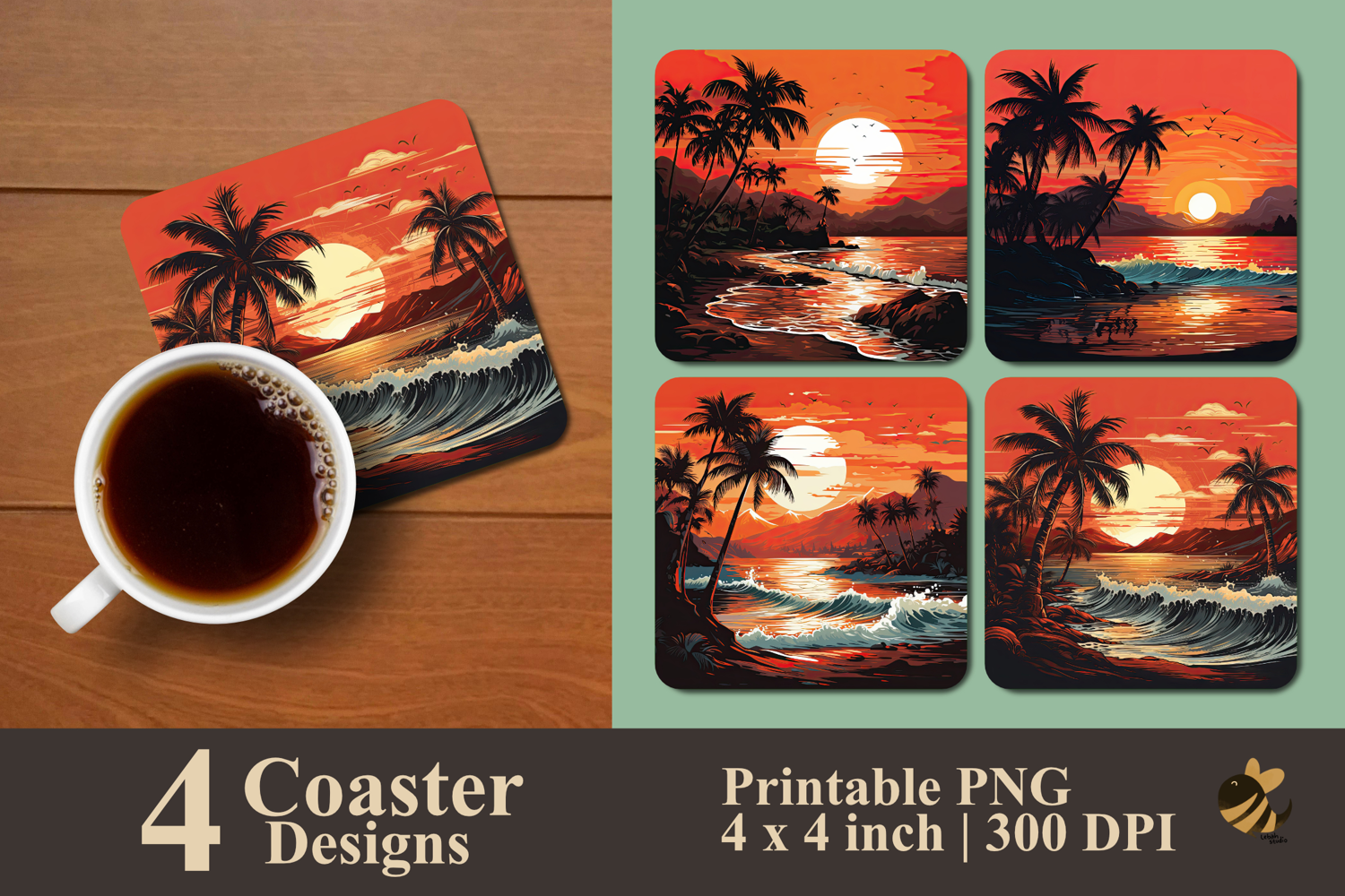 Coaster Sublimation Design Coaster Template Coaster Design Square Coaster Coaster Sublimation Design Coaster Sublimation Vintage Coaster Modern Coaster Tropical Sunset Beach Coaster Sublimation Design
