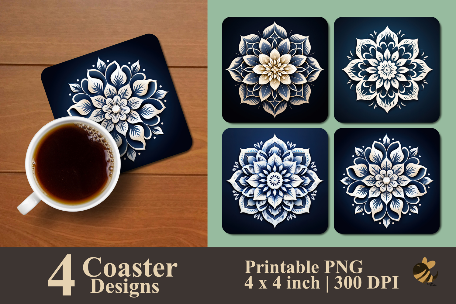 • 4 Coaster design about 4x4 inches around 1200x1200 px PNG files 300 DPI