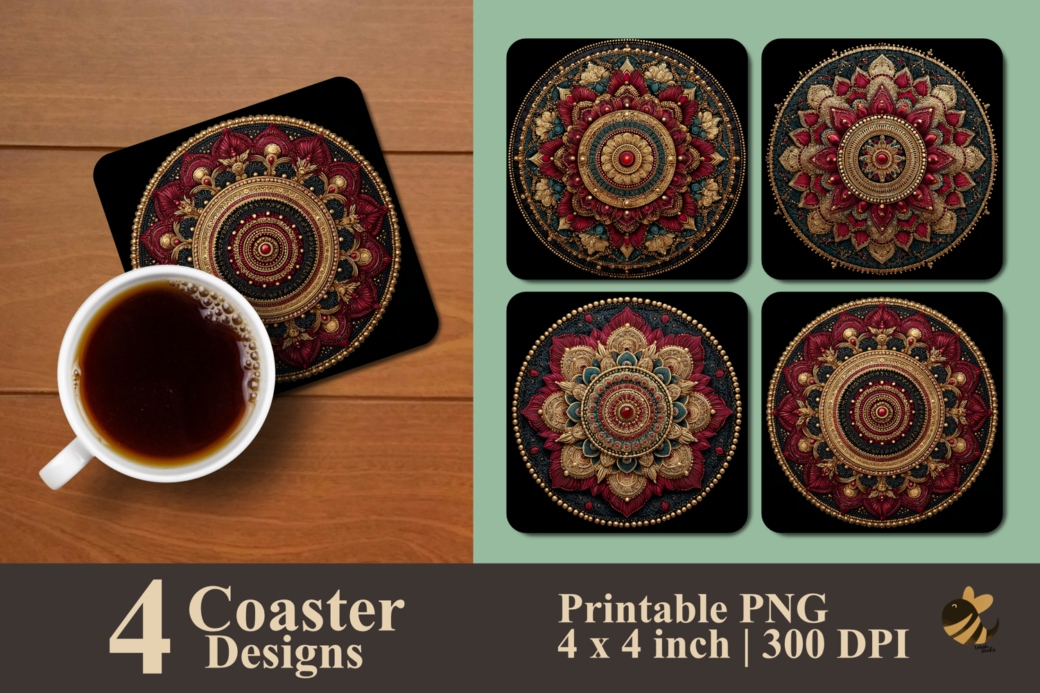 • 4 Coaster design about 4x4 inches around 1200x1200 px PNG files 300 DPI