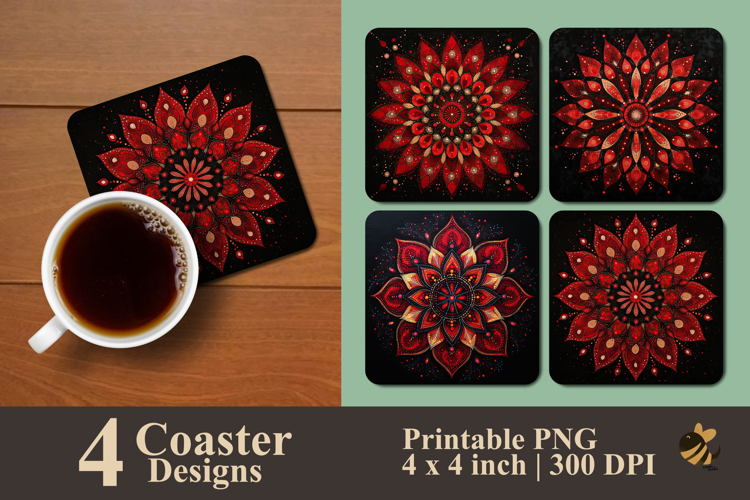 • 4 Coaster design about 4x4 inches around 1200x1200 px PNG files 300 DPI