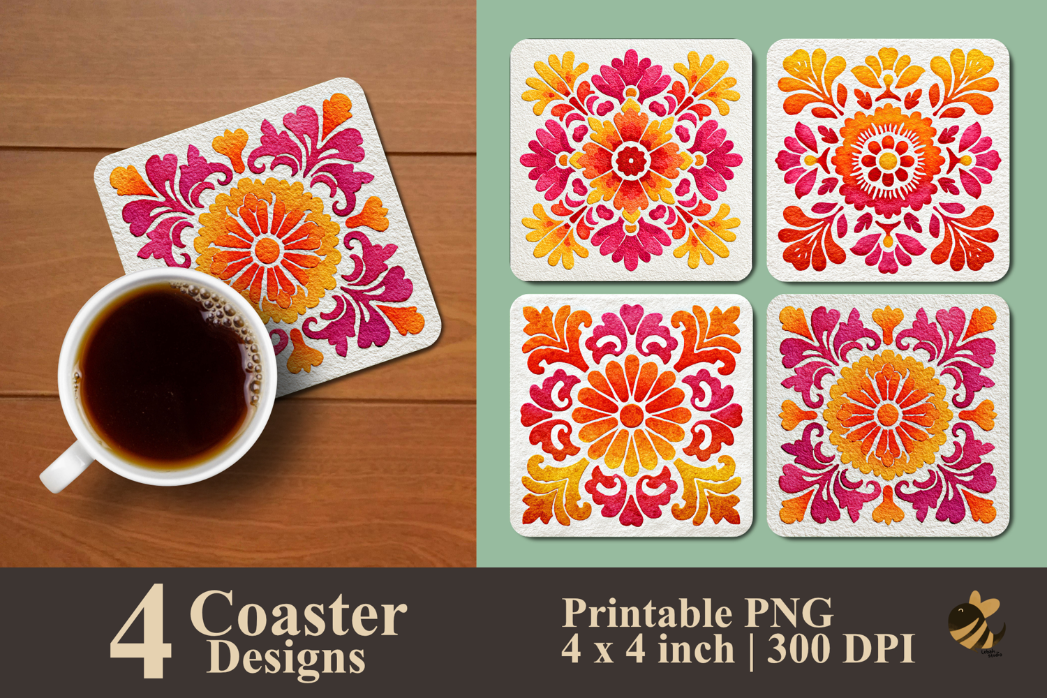 • 4 Coaster design about 4x4 inches around 1200x1200 px PNG files 300 DPI