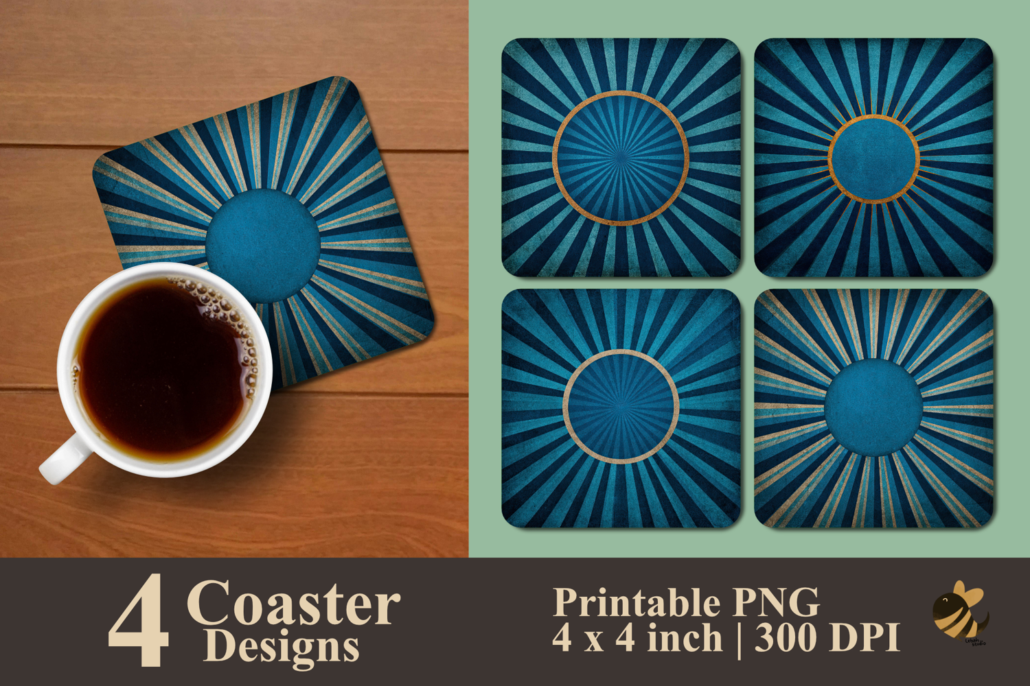 • 4 Coaster design about 4x4 inches around 1200x1200 px PNG files 300 DPI