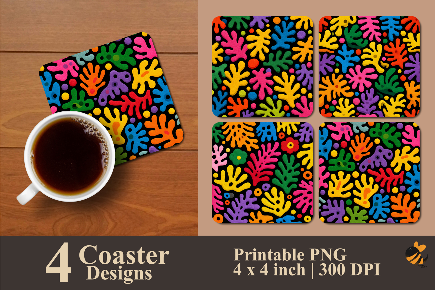• 4 Coaster design about 4x4 inches around 1200x1200 px PNG files 300 DPI
