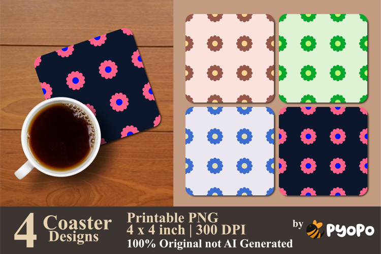 • 4 Coaster design about 4x4 inches around 1200x1200 px PNG files 300 DPI