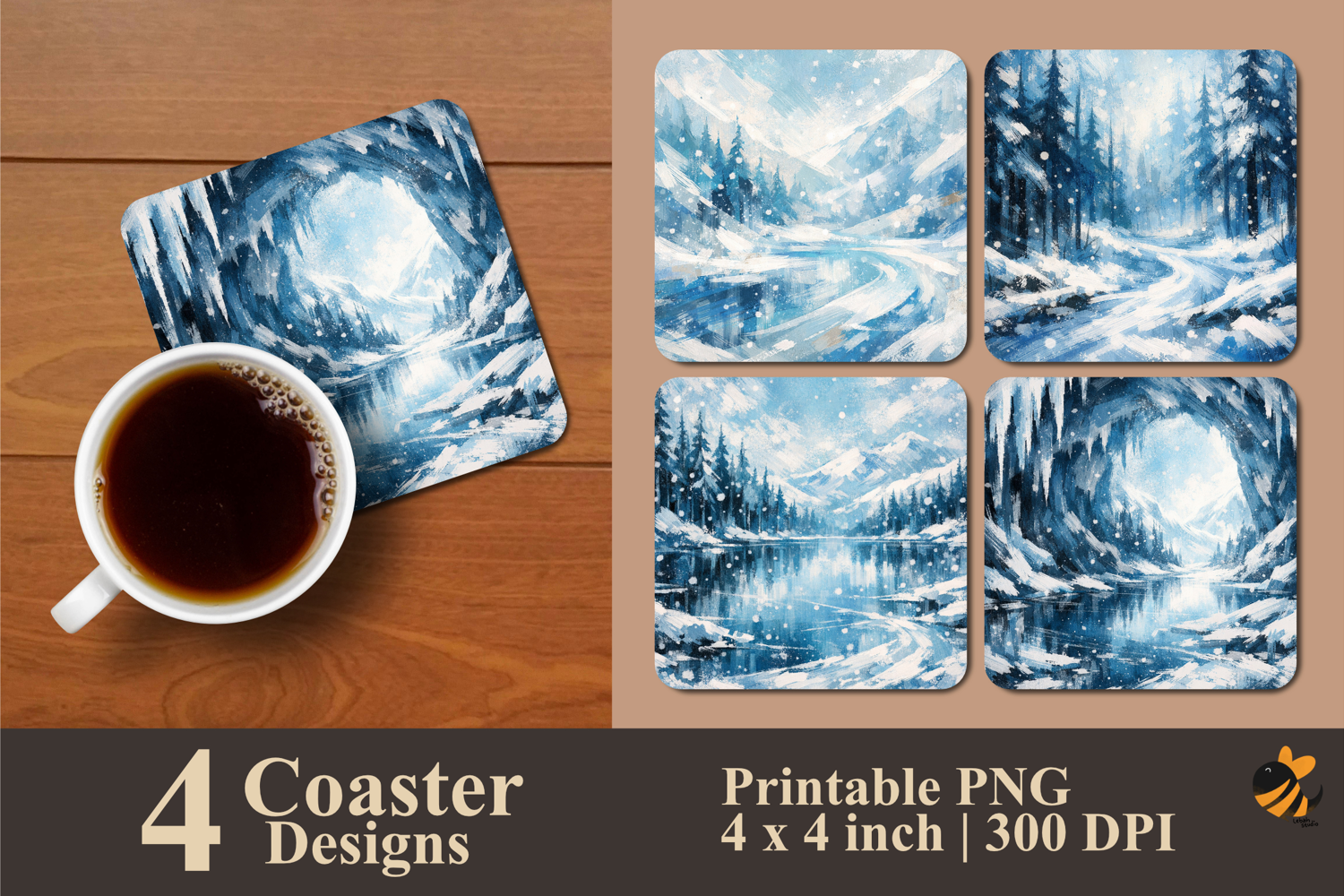 • 4 Coaster design about 4x4 inches around 1200x1200 px PNG files 300 DPI