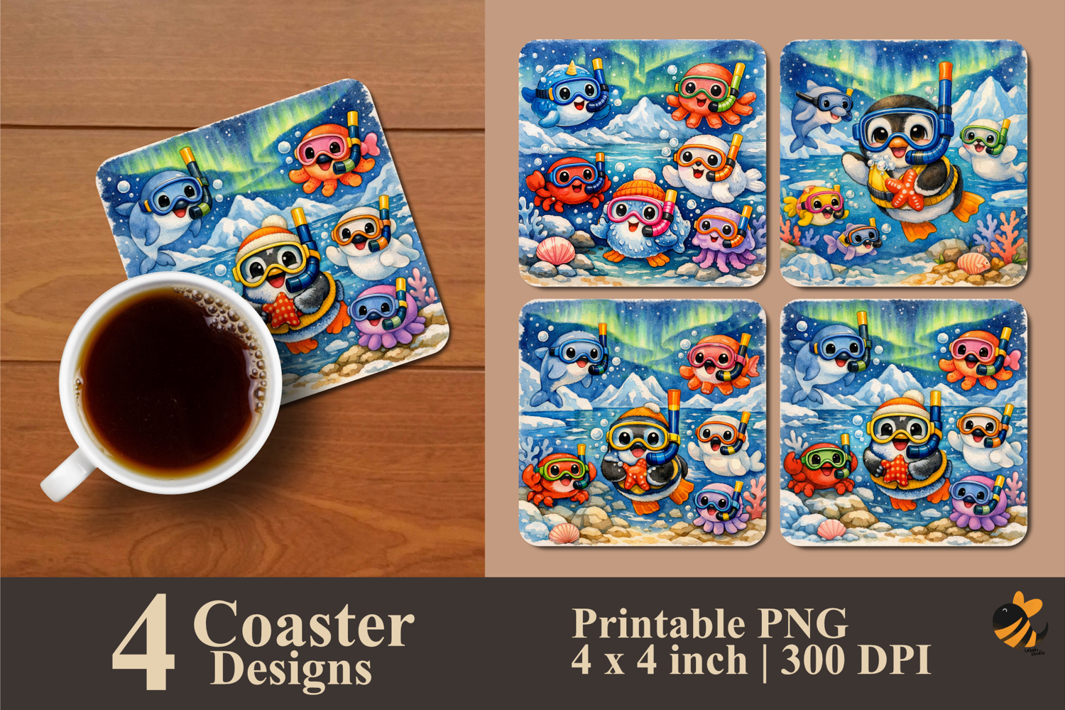Frosty Reef Explorers Coaster Sublimation Design example image 1