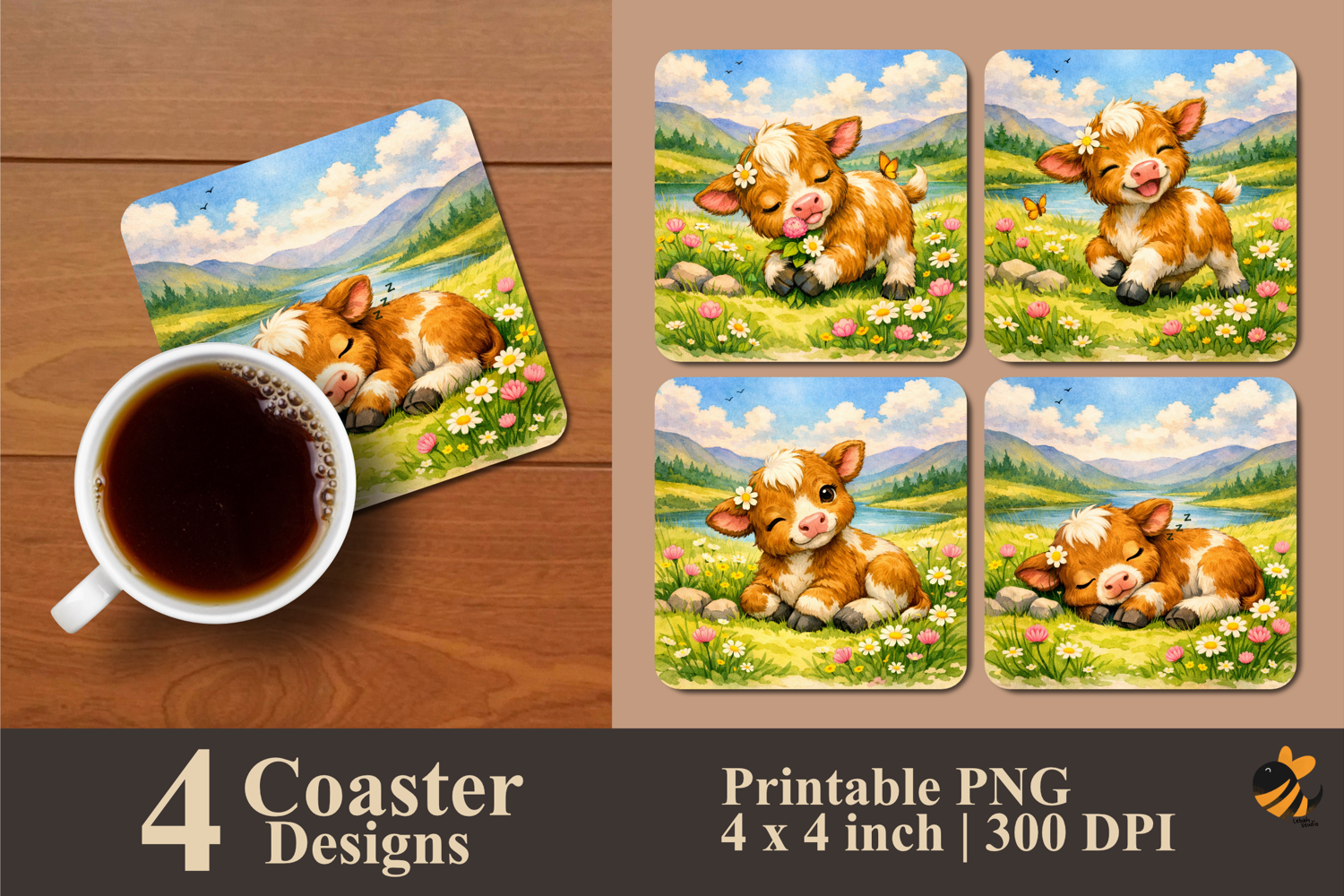 Coaster Sublimation Design Coaster Template Coaster Design Square Coaster Coaster Sublimation Design Coaster Sublimation Vintage Coaster Modern Coaster Sunny Cow Meadows Coaster Sublimation Design