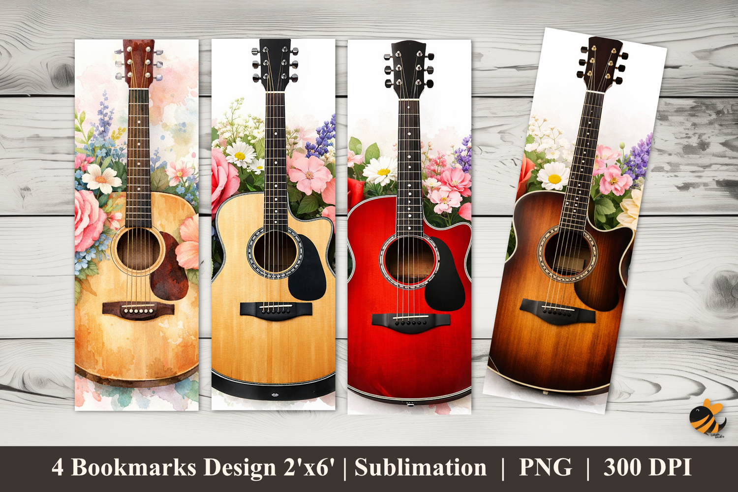 Flower Guitar Bookmarks Sublimation Design example image 1