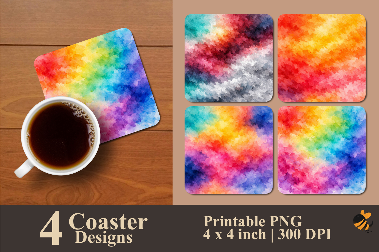• 4 Coaster design about 4x4 inches around 1200x1200 px PNG files 300 DPI