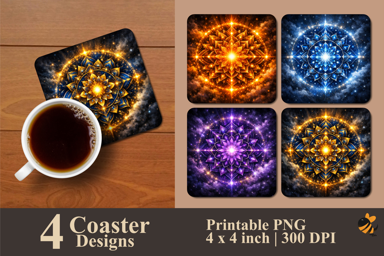 • 4 Coaster design about 4x4 inches around 1200x1200 px PNG files 300 DPI