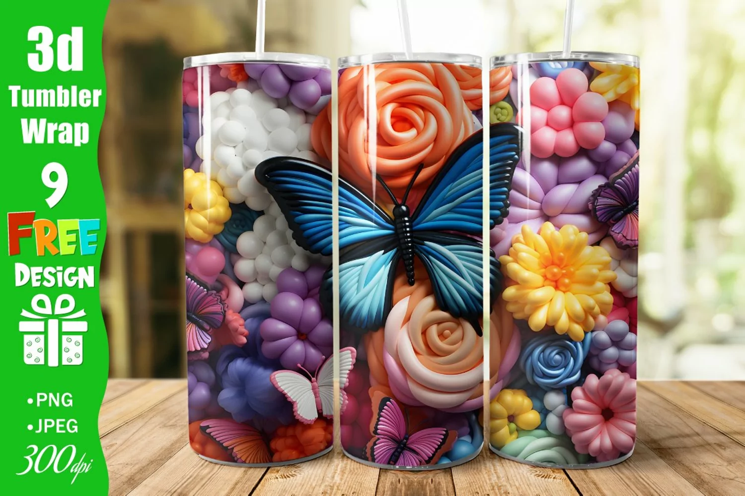 3D Butterflies Floral 20oz Skinny Tumbler Sublimation Design, Digital Download PNG, Straight & Tapered PNG, 3D Embroidered Flowers 20 oz Tumbler, Full Wrap Tumbler, Sublimation, 3d Sublimation Tumbler Wrap