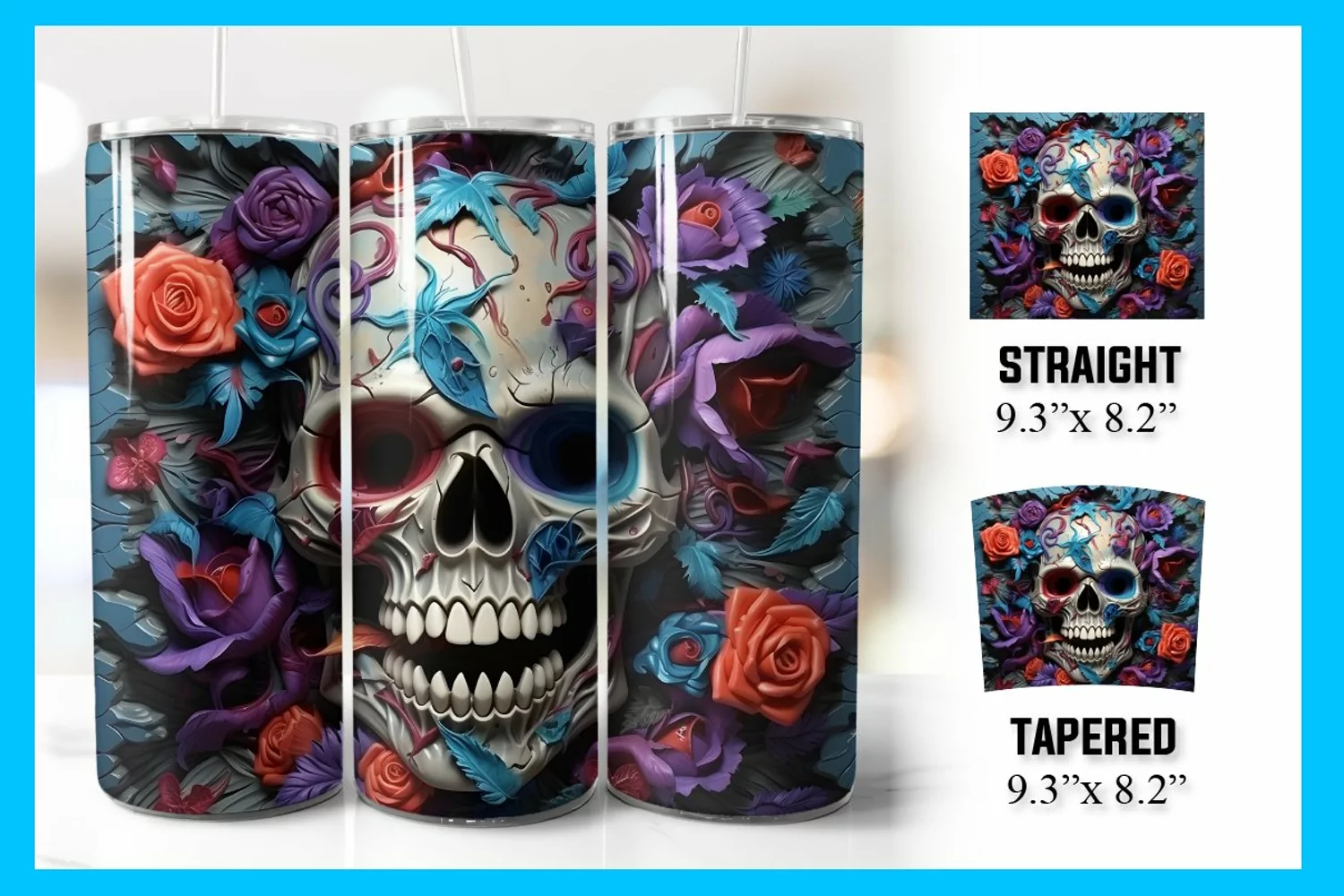 Similar Design Products to 3D Skull Tumbler Wrap Sublimation, 20 oz Skinny Tumbler