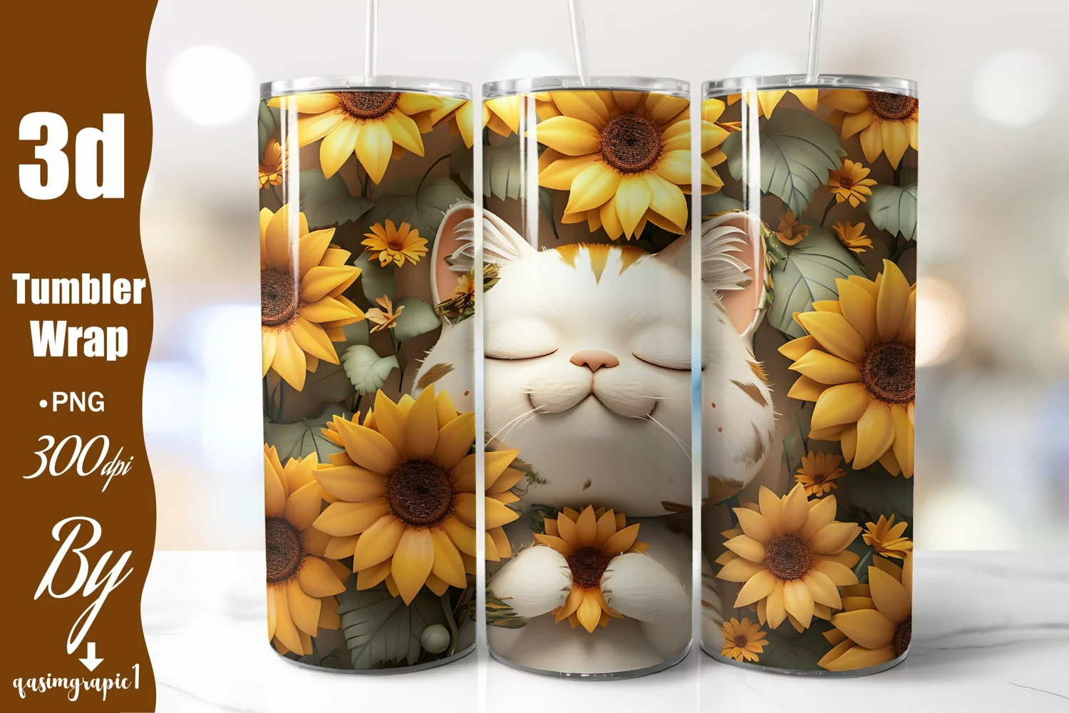 3D Cat Tumbler Wrap - 20 oz Tumbler Wrap Sunflowers