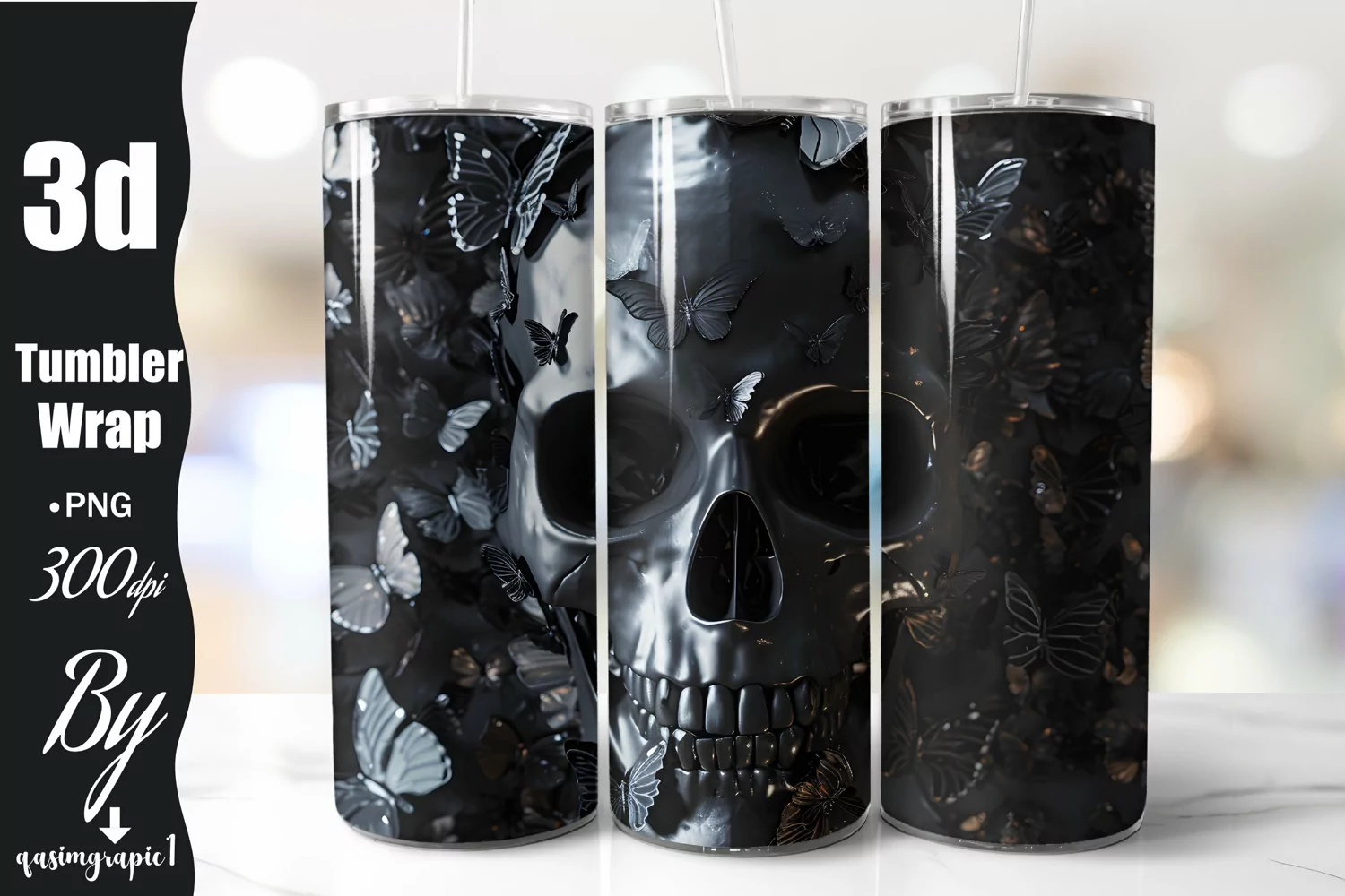 Similar Design Products to 3D Black Butterflies Skull 20 Oz Tumbler Wrap