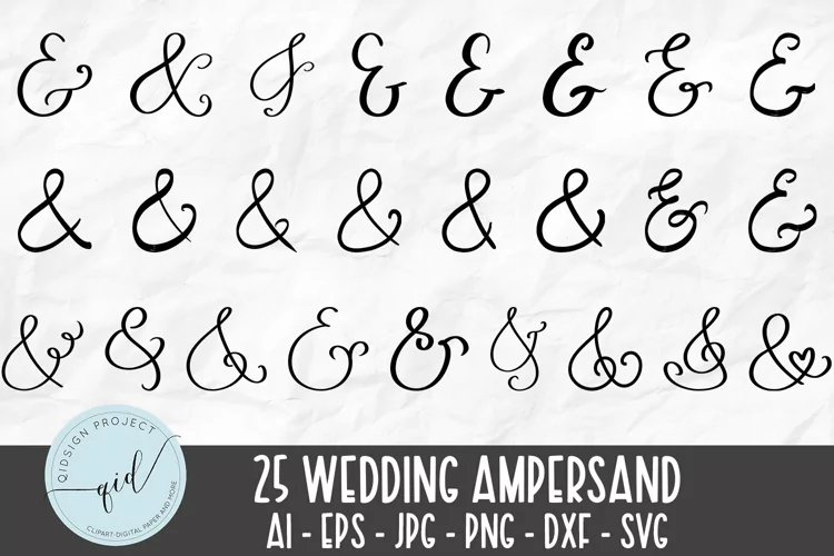 Ampersands for letters and invitation SVG with 25 variations