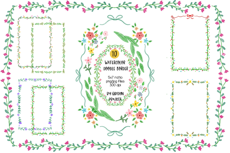 🌸 Floral Border Clipart Bundle – 10 Hand Drawn Botanical Frames