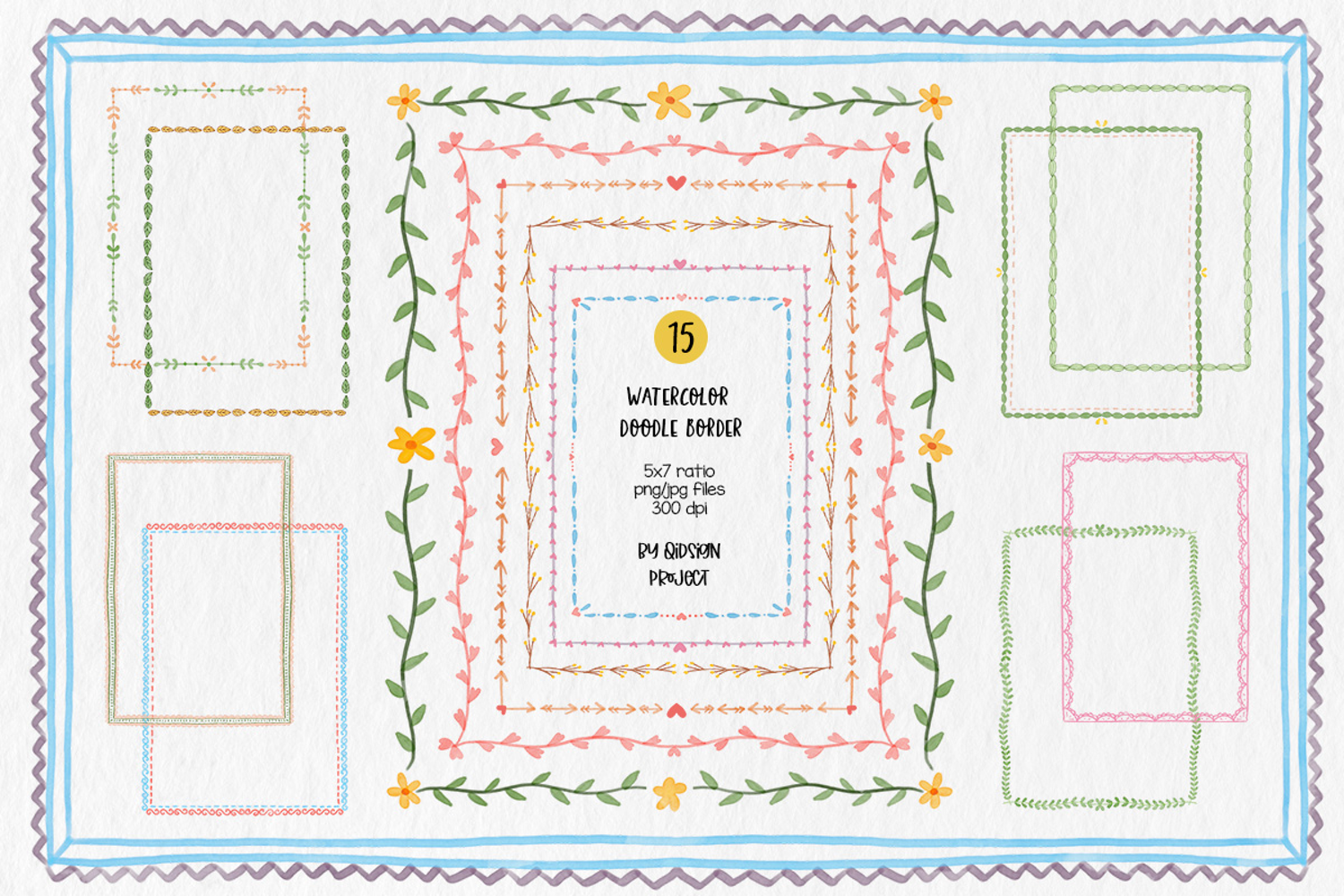 ✔ 15 watercolor doodle border designs