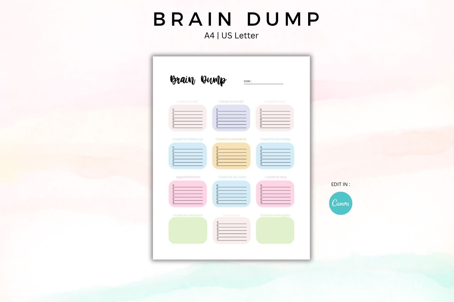 Brain Dump & Task Triage Planner A4 US Letter Canva