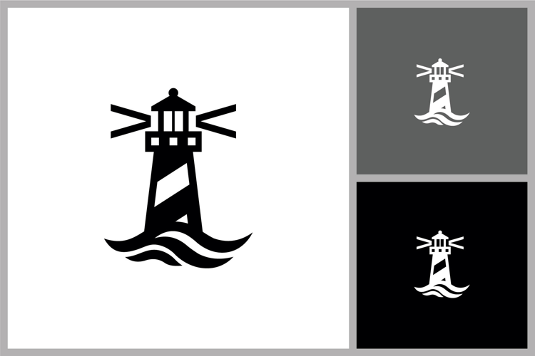Logo Vector Icon Ocean Sea Nautical Safety Lighthouse Navigation Guidance