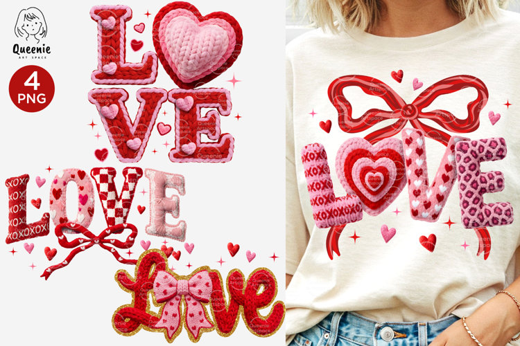 Add warmth and charm to your Valentine projects with this Love png featuring cozy yarn style letters heart textures and a sweet ribbon bow design.