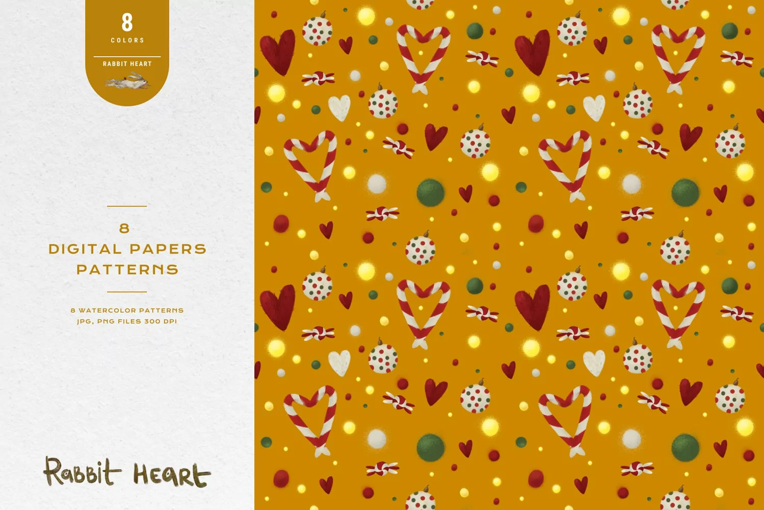 Christmas Hearts - Watercolor Patterns Set - 8 Hand Painted Watercolor Seamless Patterns.