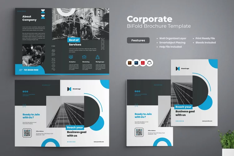 Corporate Bi-Fold Brochure Template is corporate business brochure or flyer template will help you to promote your any project purpose with elegant, modern, simple, minimalist and professional design. With professional design you can use this template for any kind of businesses, company, corporate and any marketing promotion.