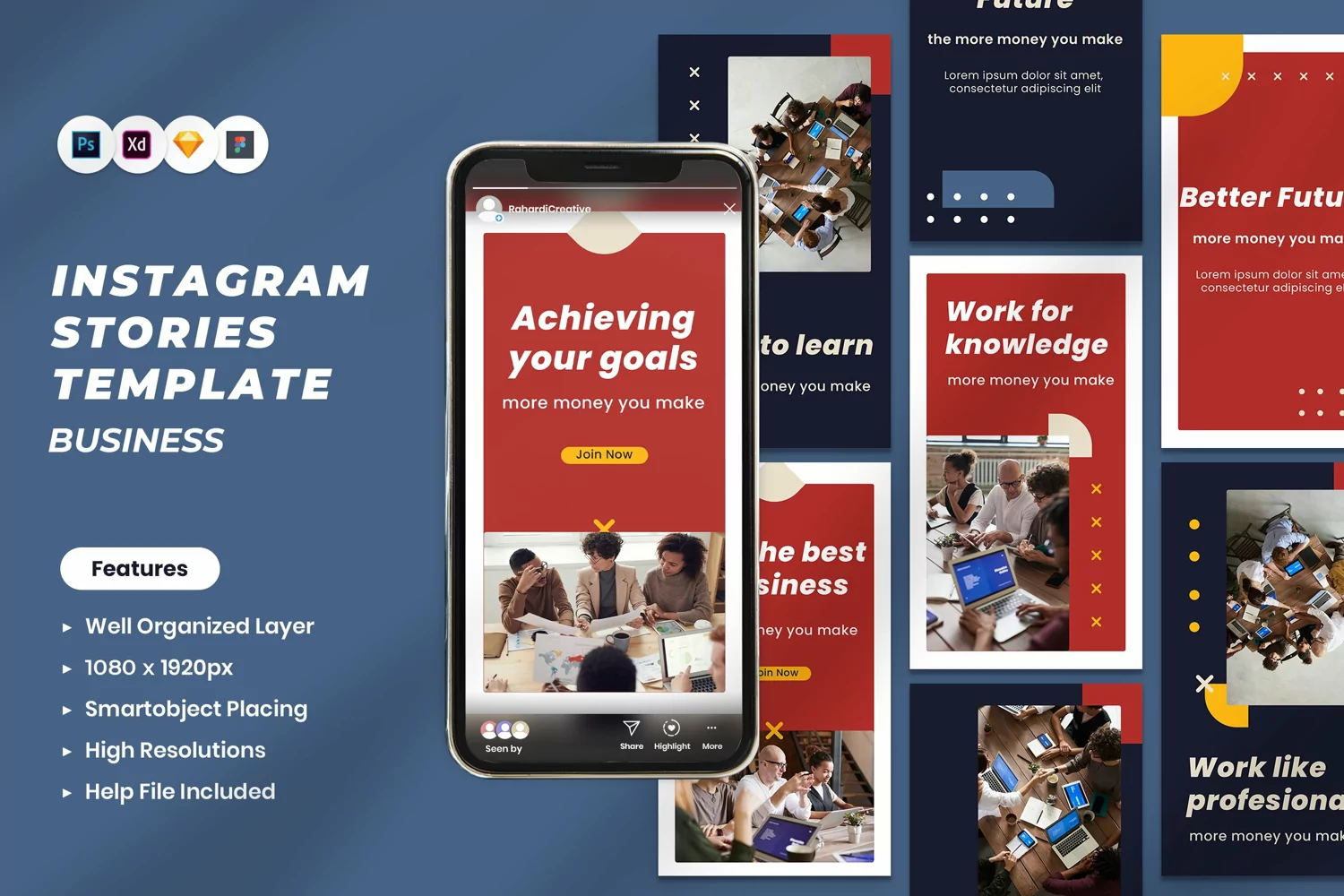 There are many ways to promote your brand to increase more followers. Business Instagram Social Media Story is a multi-purpose pack to promote your business. This pack great for designers, bloggers, creators, and entrepreneur. This pack will greatly​ influence on your audience. Change the text, colors, images, strokes and shapes to achieve the best result you want. Mix and match to create your custom post, and achieve the best impact to your followers.
