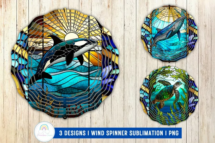 Stained Glass Ocean Wind Spinner Sublimation Designs