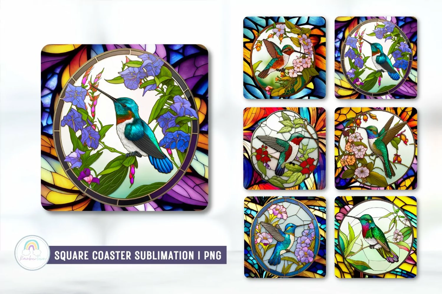 Similar Design Products to Stained Glass Hummingbird Square Coaster Sublimation Designs
