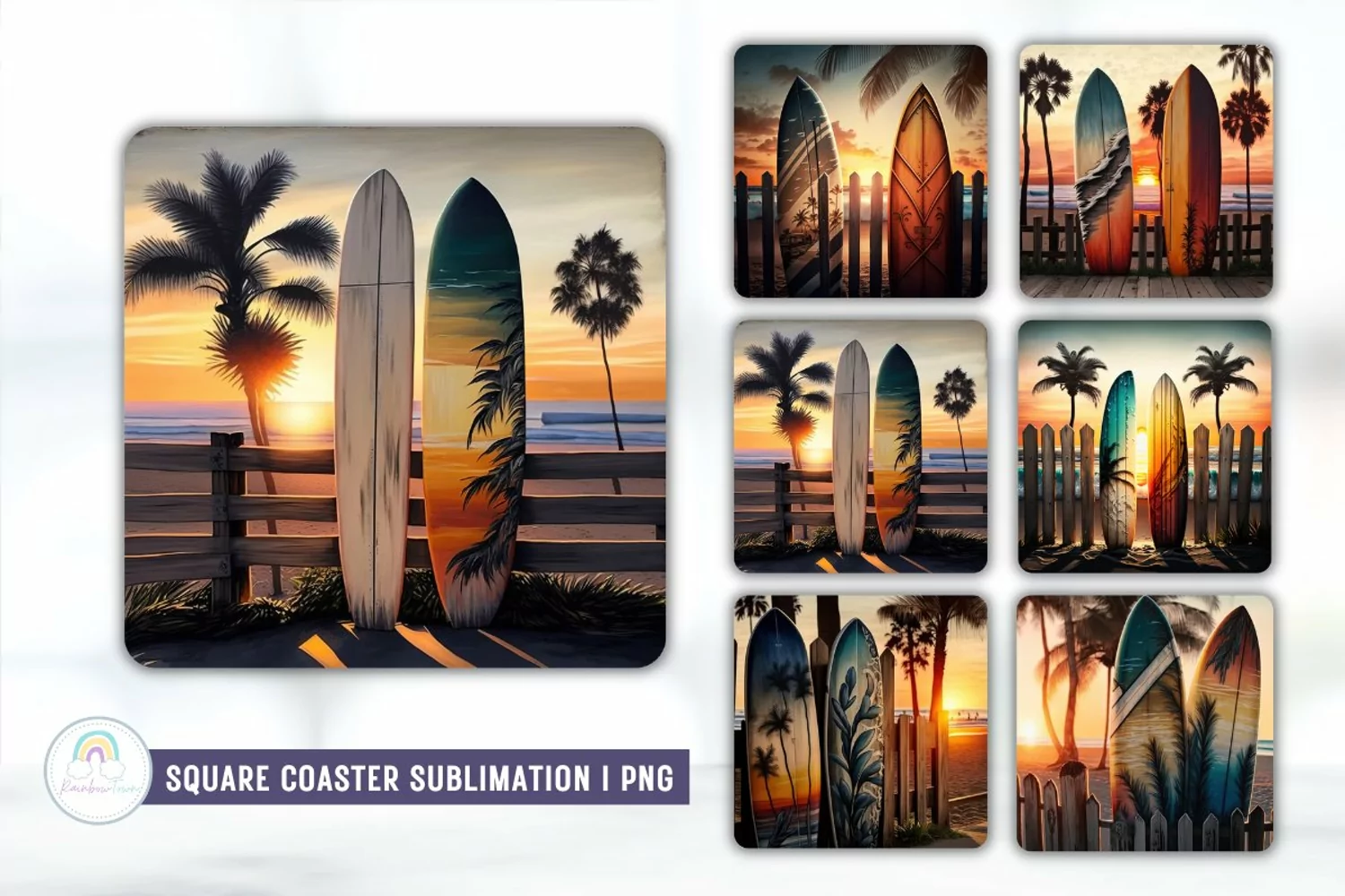 Surfboard Beach Square Coaster Sublimation Design Bundle example image 1