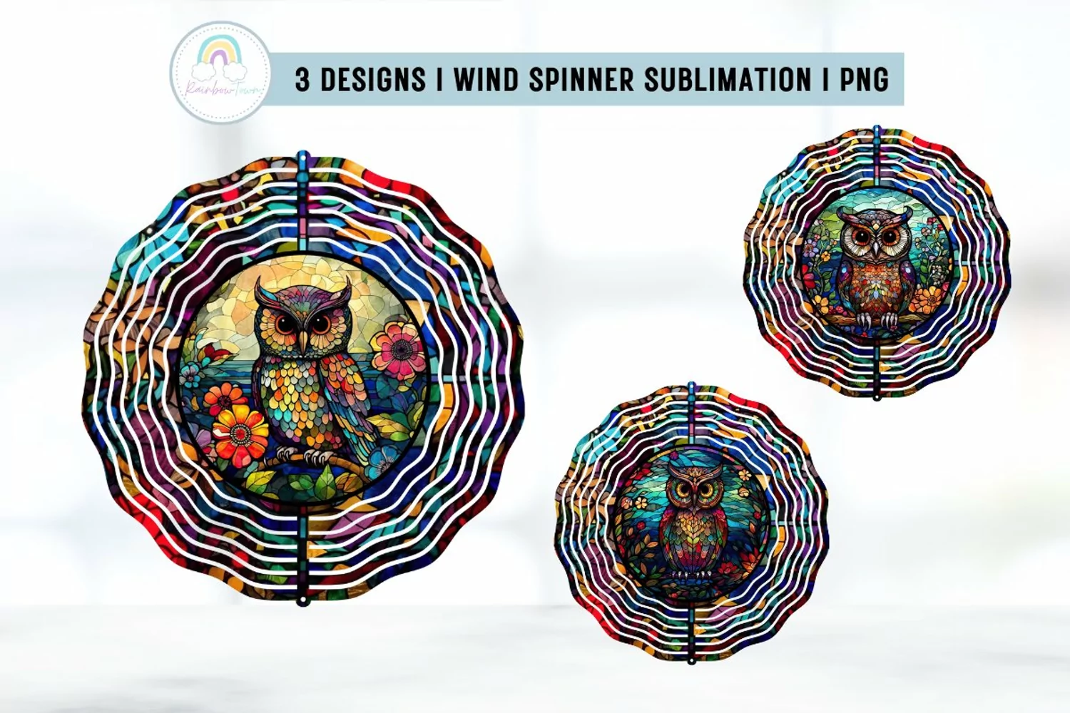Stained Glass Owl Wind Spinner Sublimation Designs