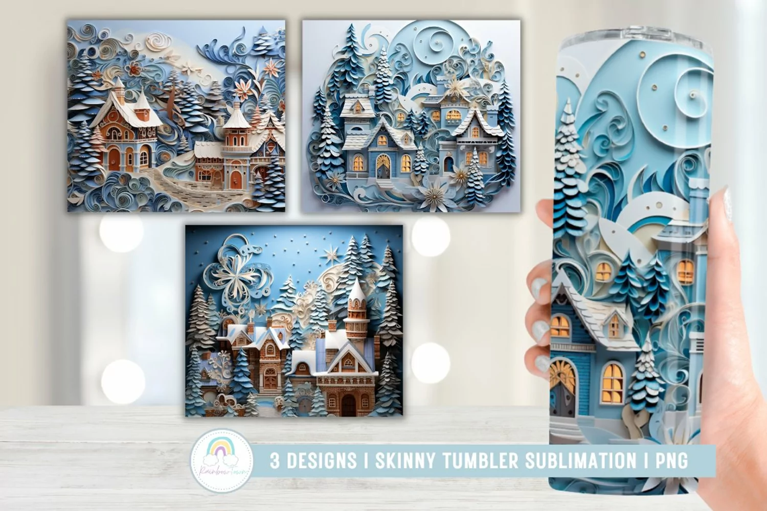 3D Paper Quilling Christmas Village Tumble Sublimation