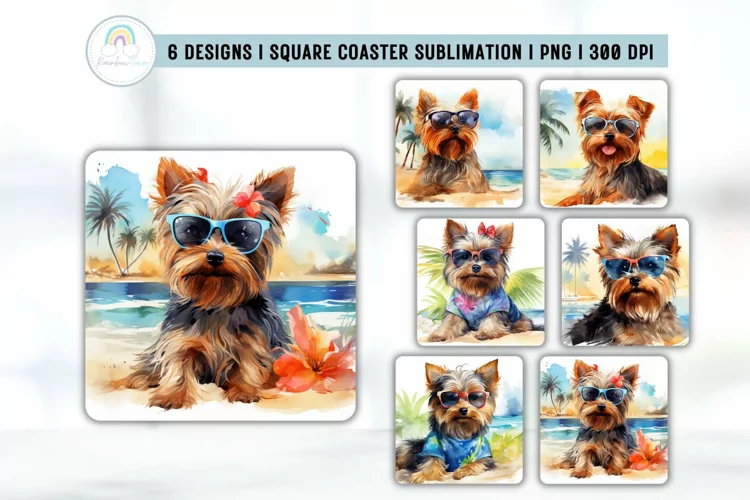 Yorkshire Terrier Square Coaster Sublimation Bundle