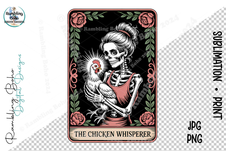 Halloween Spooky Skeleton Chicken Sublimation Funny Halloween Tarot Skeleton Hands Tarot Card Chicken Whisperer