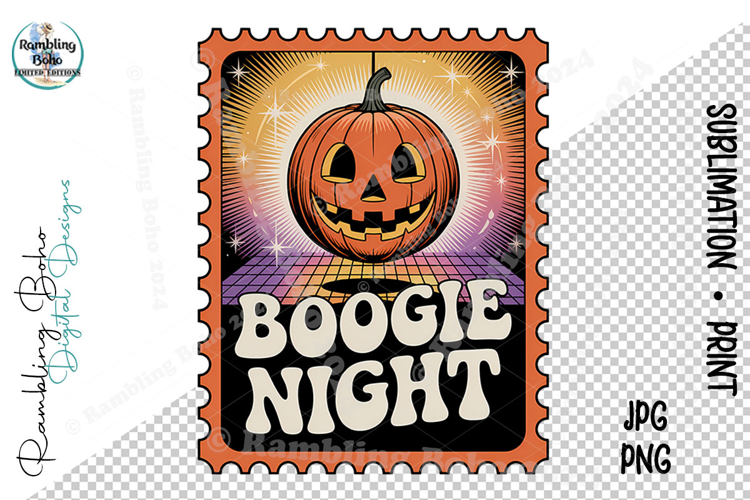 Boogie Night Retro Jack-O-Lantern Stamp example image 1
