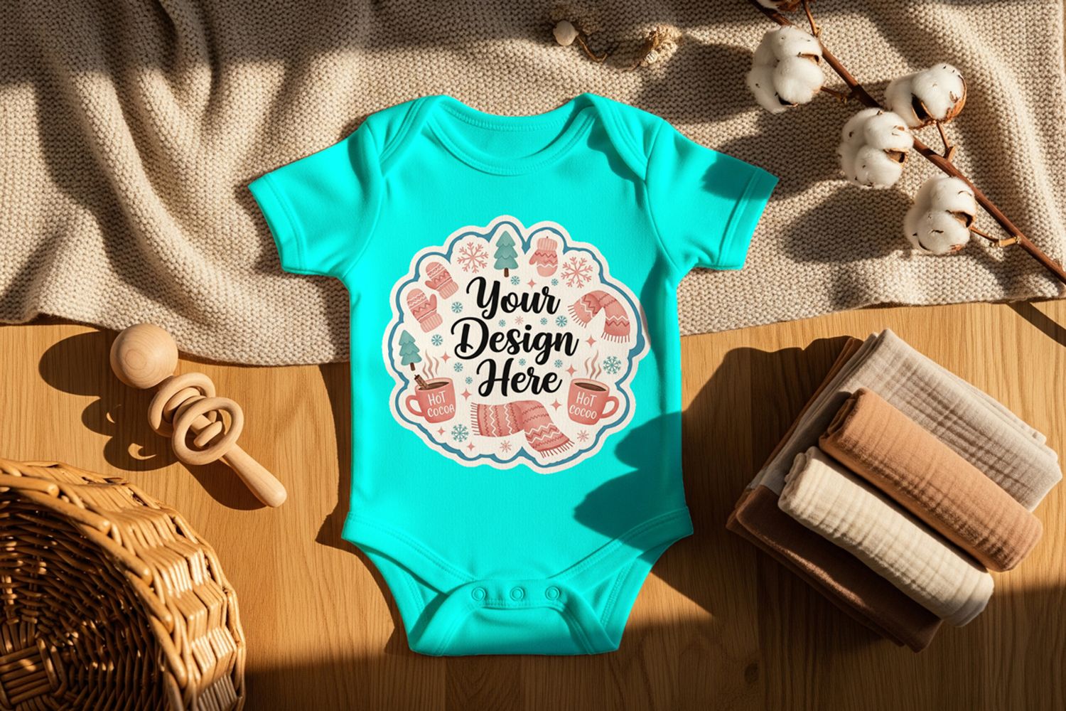 • Color Customization: Adjust the onesie color directly within Photoshop to match your brand palette or babywear concept.