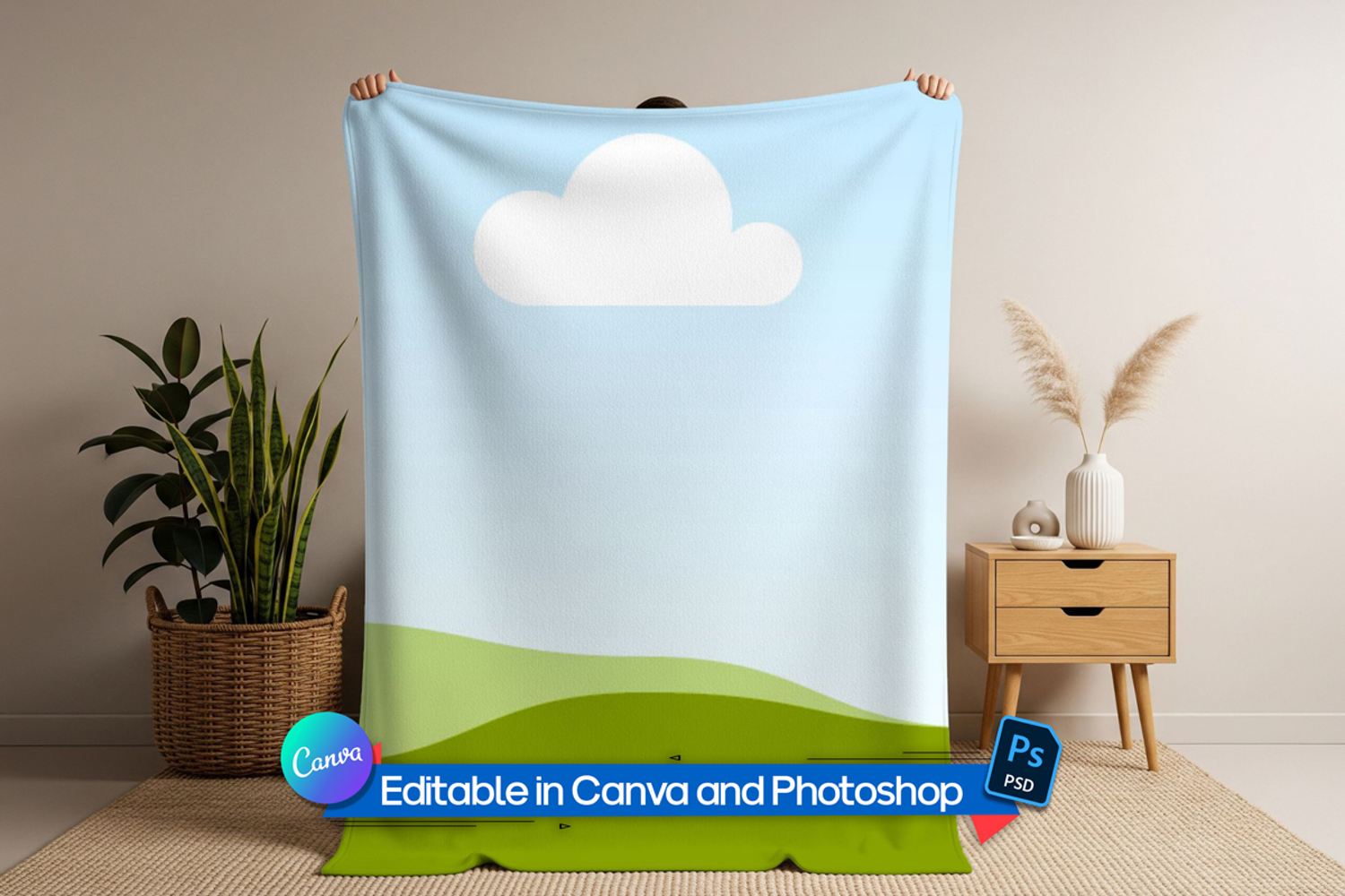 Showcase your illustrations, patterns, or branding concepts with the Cozy Blanket Mockup — a high-quality, editable mockup designed to present your artwork in a soft, warm, and natural setting. Featuring a realistic blank white blanket and beautifully styled interior elements, this mockup is perfect for surface designers and home decor brands to display their products in a polished and professional way.