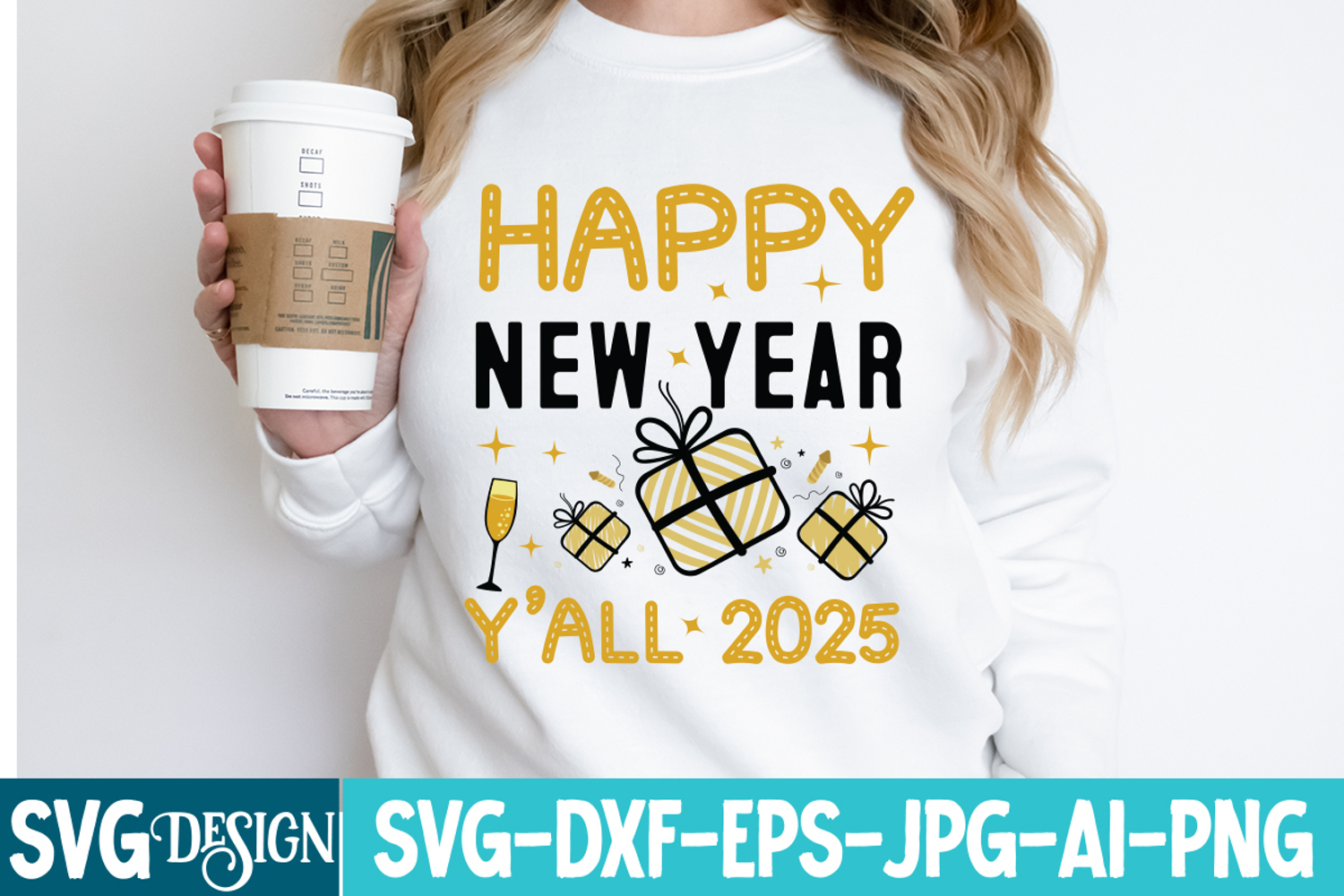 Happy New year Y’all 2025 SVG Design,New Year SVG Design example image 1